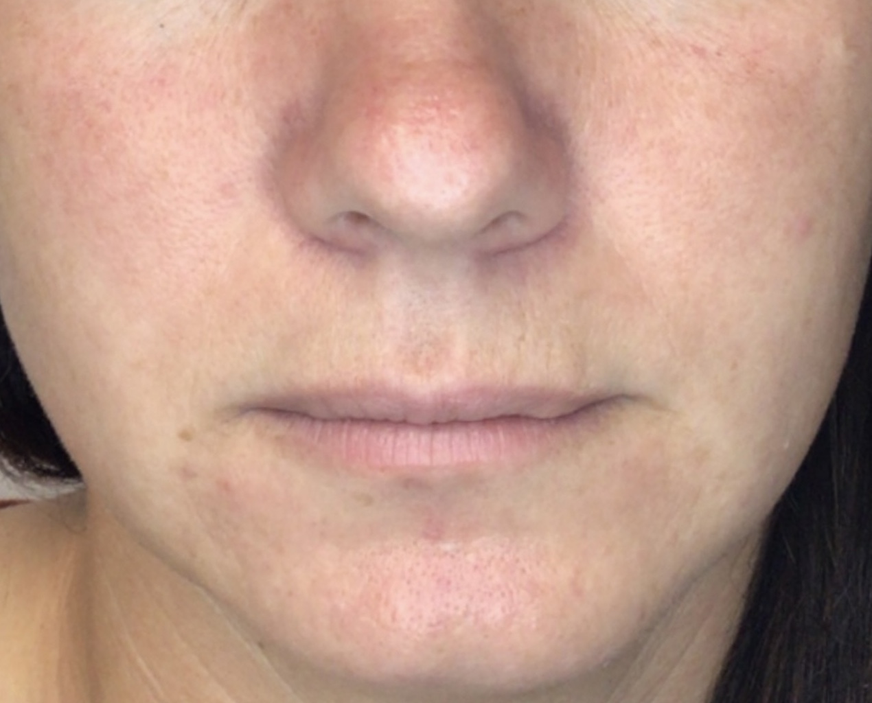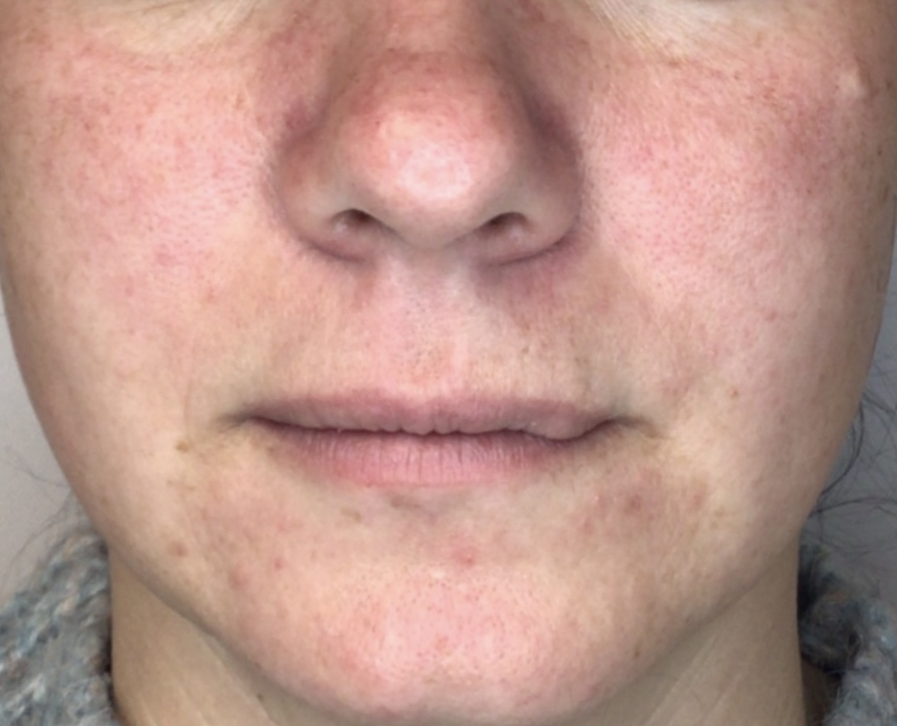 После процедуры гиперпигментированные пятна темнеют и начинают отшелушиваться, пористый рисунок стягивается, сосуды становятся менее заметными. Очень эффективно для ликвидации застойных поствоспалительных пятен после акне.
